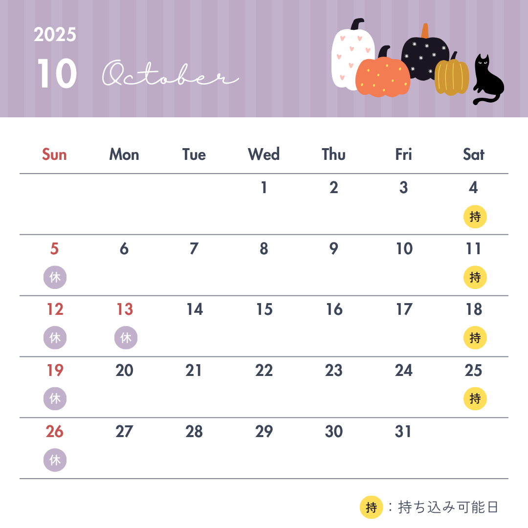 10月の営業スケジュールです。